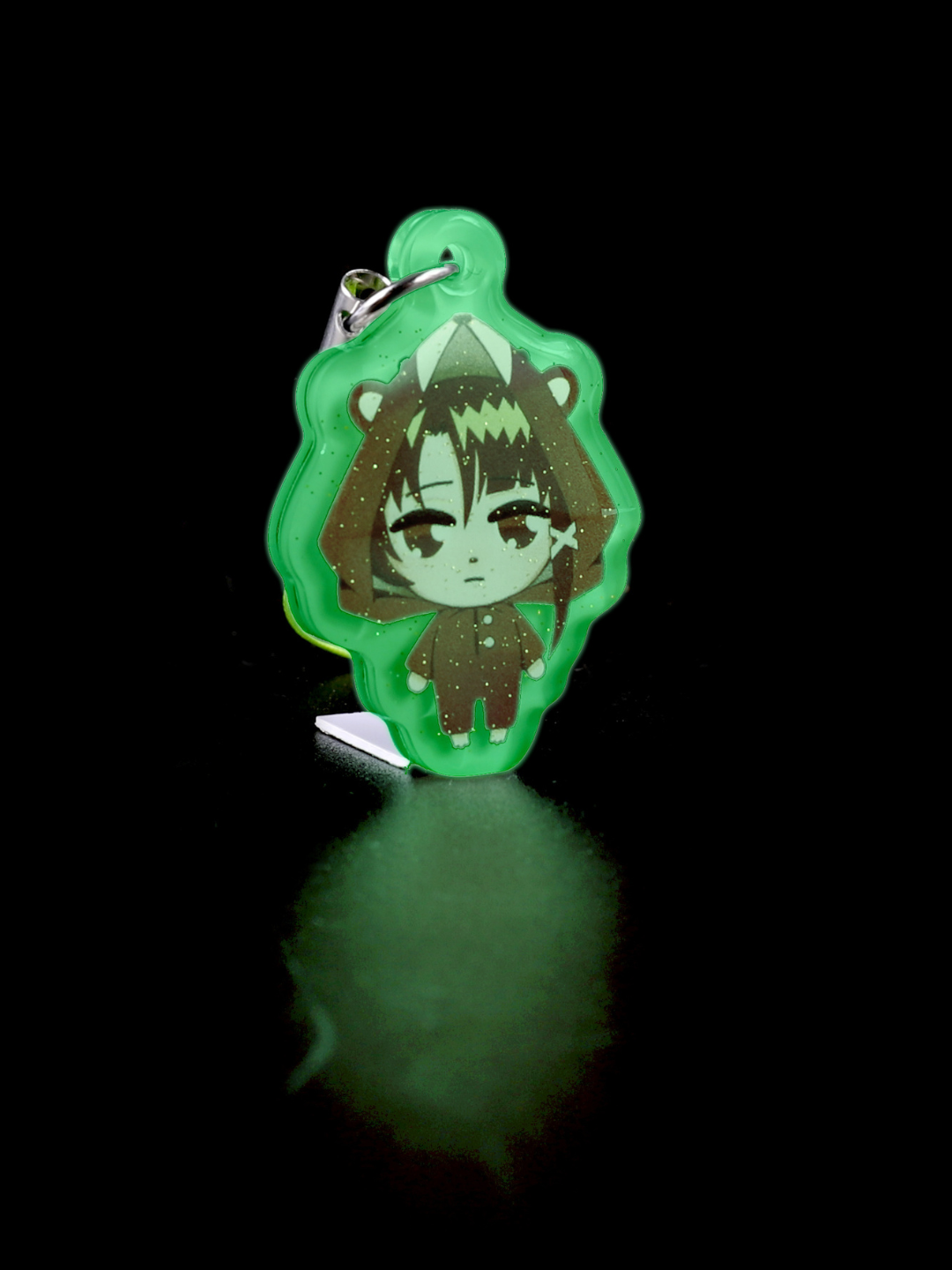 Acrylic double sided keychain. Charm of the keychain is approximately 1.5 inches. Front side has glitter epoxy top coat.